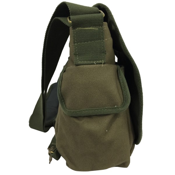 (RT107) Item: RT107 Material: Heavy Duty Canvas Size: 13.5"X11"x4.5" Case pack: 10pcs single color/box Color Available: Olive Features: � 24oz super heavy duty Canvas material. (regular quality is 14-16oz). � Roomy zippered main compartment with nicely padded laptop pocket, Fit most 15" laptops and tablets. � Detachable Waist strap to keep bag on your back for Motor Bike/bicycle riders. � Adjustable heavy duty shoulder strap with heavy duty metal buckles and padded shoulder pad. � Production Dimension: 13.5"X11"x4.5" . � Large size side pocket on both sides with cover. � Right side pocket with Velvet lining for Smart phone, large enough for Iphone 6 Plus with case . � 2 medium sized front pockets with Velcro opening. � 1 large front pocket with organizer. � Zippered pocket in main compartment. � Back pocket with Velcro opening. � Reinforced shoulder strap on both sides. |