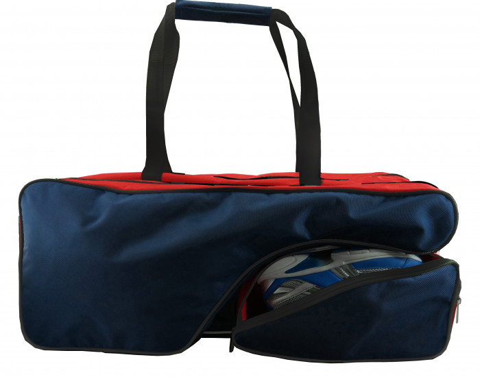 - Deluxe Badminton Racket Bag with Back Zippered compartment for shoes. 2 front water bottle holders, fits 32oz Gatorade bottles.
