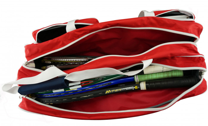 - Tennis Travel Bag with 2 Long handles with padded wrap serve as shoulder strap.